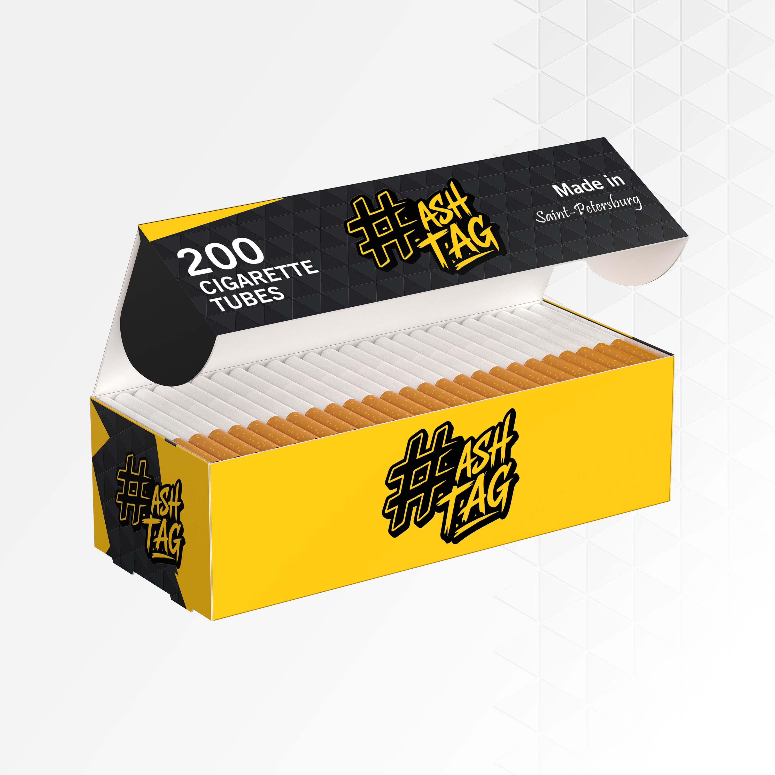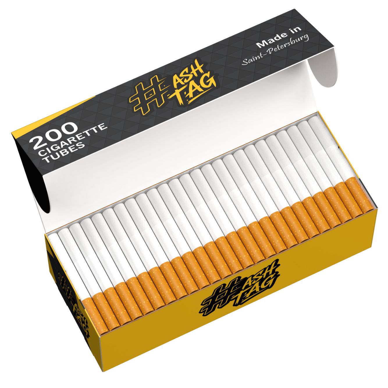 Гильзы сигаретные Hashtag - это яркое оформление классического формата построенное на современных технологиях. Броский чёрно-жёлтый дизайн упаковки, клише на каждой из гильз и пробковый ободок создают уникальное и узнаваемое сочетание качества и стиля